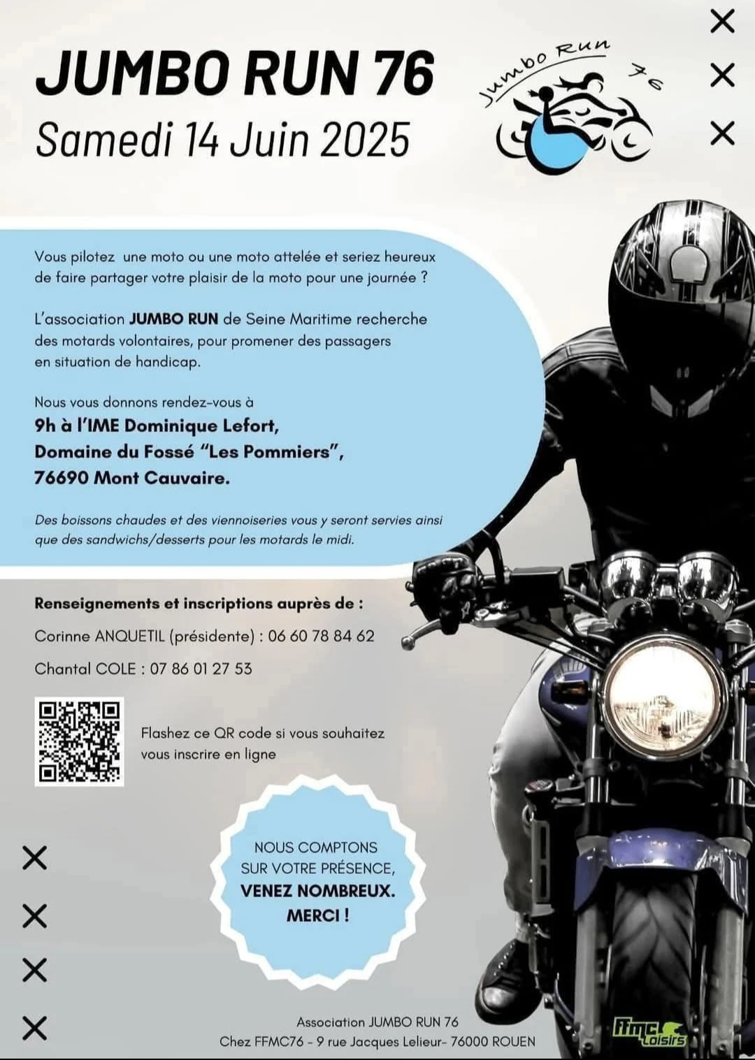 Le Jumbo Run est une rencontre unique qui réunit des motards bénévoles et des personnes en situation de handicap, dans le but de partager une journée placée sous le signe de la convivialité, de la découverte et de la liberté. Cet événement offre à chacun des instants précieux, faits de balades, de rencontres et de sourires.